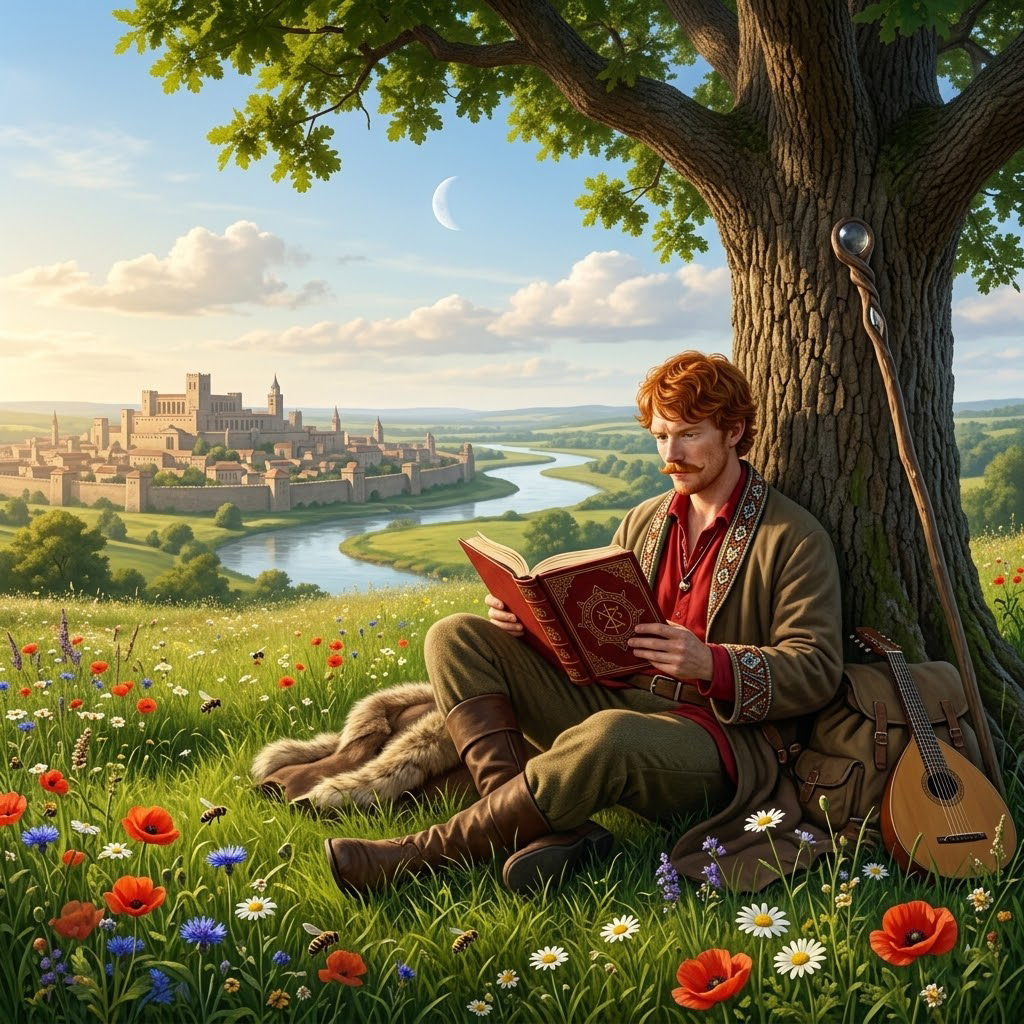 Esent sitting under a tree reading up on enlightened geometry.